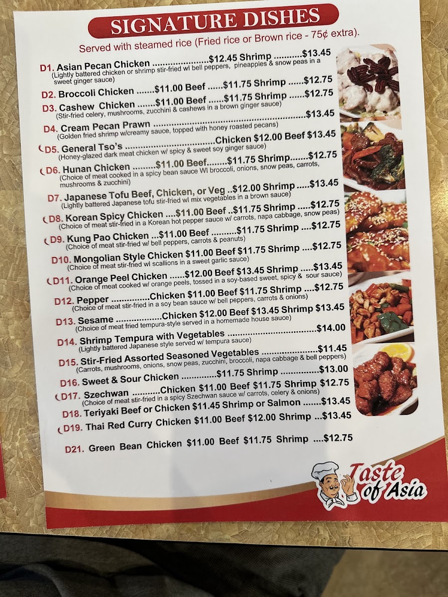 With a cozy atmosphere and knowledgeable staff, Taste Of Asia not only serves exceptional food but also provides a welcoming dining experience. Every dish is crafted thoughtfully, ensuring freshness and flavor, making it a great destination for casual meals or special occasions.